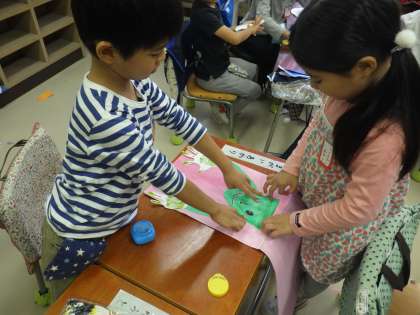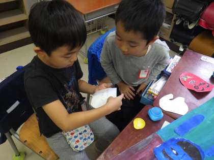 友達に手伝ってもらったり、友達にこつを聞いたり、いろいろな人と関わり合って作品はつくられていきます。