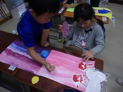 展覧会に向けて1年生は一生懸命作品をつくっています。