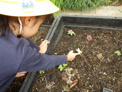 1年生は生活科の時間に、よく中庭や校庭に出て観察をしています。