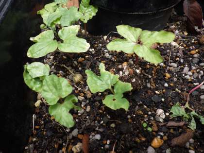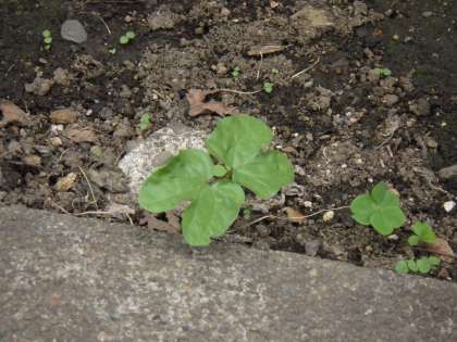 今日は中庭のグリーンカーテンがあった場所でアサガオの芽を見つけました。たぶんタネがこぼれて発芽したのでしょう。