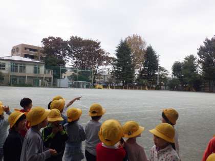 1年生は校庭の木を遠くから見て見たり、近くによって見て見たり、自然の美しさを自分の目で確かめました。