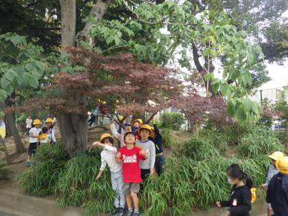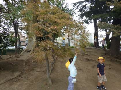 もみじの木の下では、昨日音楽朝会で歌った「もみじ」を口ずさんでいました♪