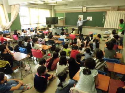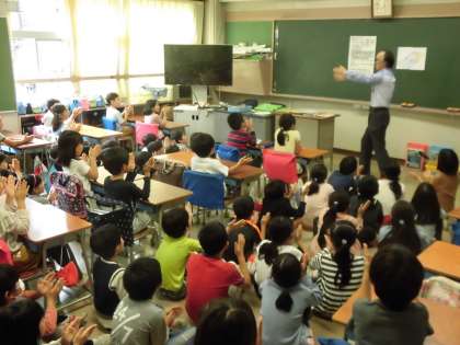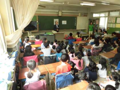 今日は4時間目に「桜丘児童館」の館長さんが来てくれました。館長さんと手遊びしたり、クイズをしたりと、楽しい時間を過ごしました。