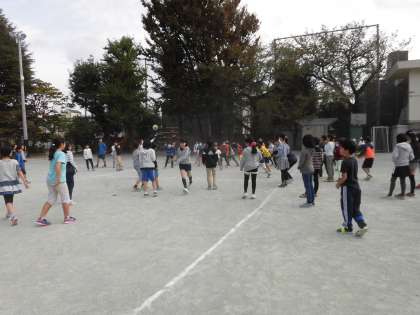今日の中休みに、校庭で熱きバトルがくり広げられていました。
