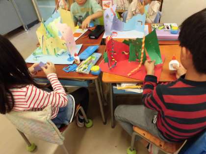 屋根のようにしたり、折ってバネのようにしてみたり、色々な表し方の工夫ができました