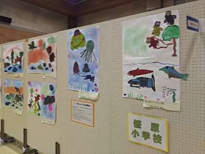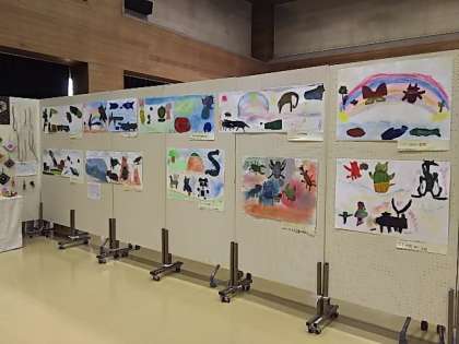 本校からは、紙版画の共同作品「でこぼこもようのなかまたち」を出展しています。来週開催の展覧会でも展示します。本校の他にも、さくらの学び舎の桜丘幼稚園・桜丘小学校・桜丘中学校の作品も展示されています。ぜひご覧ください。