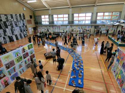 今日は展覧会2日目で、たくさんの保護者の皆様や地域の皆様が展示会場へ足を運んでくださっています。