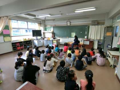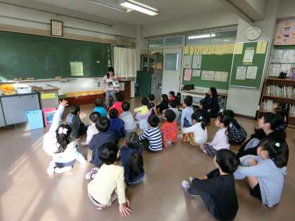 今日の朝読書の時間、1年3組でお話しポケットの方々による読み聞かせがありました。お二人の方からそれぞれ1冊ずつ本の紹介があり、楽しく聴かせていただきました。
