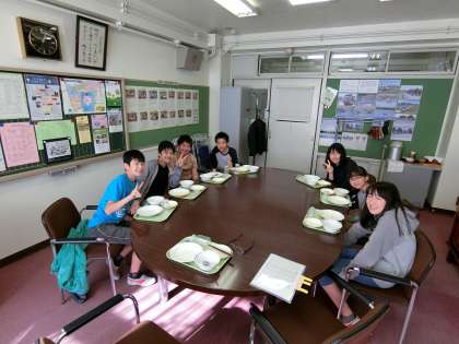 1組と2組から7名のみなさんが来てくれました。自己紹介のあと給食を食べながら会話を楽しみました。