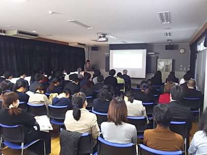 前半は、今年度の研修の視点の1つの特別支援教育について、桜丘中学校の実践報告がありました。