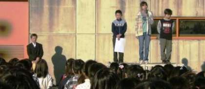 今日のスピーチは「雪の結晶について」と「お年玉について」でした。6年生は、季節に関した話をしっかりと全校の子供たちに伝えていました。
