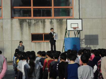 今日の全校朝会での校長先生のお話は、今週末に実施される「笹の子まつり」についてと、12月4日(火)から12月10日(月)まで実施される人権週間にかかわるお話でした。