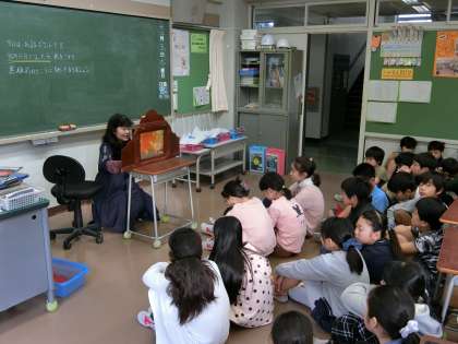 お話に合わせてみんなで歌を歌ったり、紙芝居でお話を聴いたりするなど、様々な工夫をしていただき、子どもたちも楽しいひとときを過ごしていました。