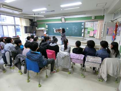 今日は、1年1組、5年1組・2組・3組の4学級で行われました。