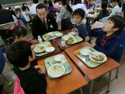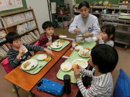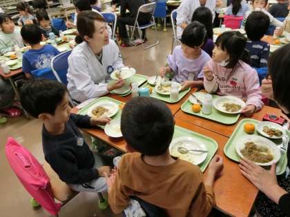 調理員さんや世田谷区教育委員会の方と楽しく会話をしながら、せたがやそだちの給食をいつもよりたくさん食べてくれた1年2組の子どもたちでした。