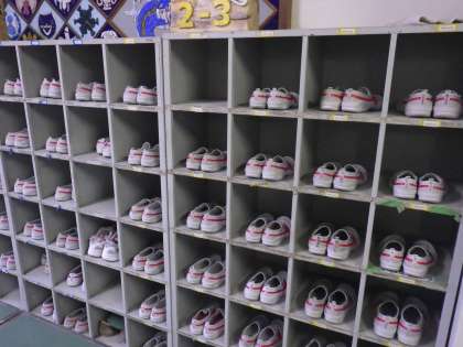 今朝、学校に来て靴箱の前を通ってみると、2年生の上履きが靴箱にきれいに並んでいました。