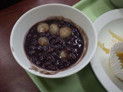 あんこの汁に入った白玉を食べて、とてもおいしそうでした!