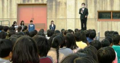 本日の朝会では、サッカー大会で頑張った子供たちを表彰しました。また、本日から勤務する産休代替教員の紹介を行いました。