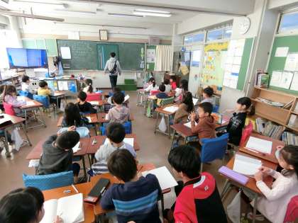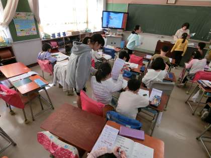 昨日は少し緊張気味だったみなさんも、今日は少し余裕も出てきたようです。子どもたちのとふれあいを通して、体育朝会や休み時間、そして学習活動にと積極的に活動を進めています。