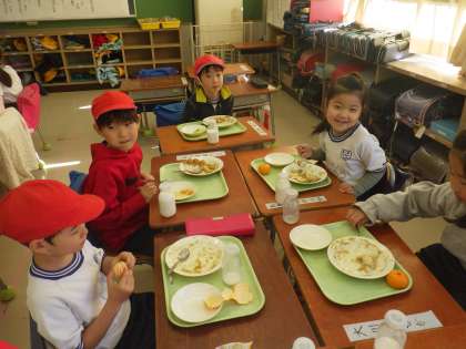 1年生はよく給食を食べていますが、ただ食べているのではなく、毎日毎日栄養士さんのメモを読んで、毎日の食材を味わって食べています。