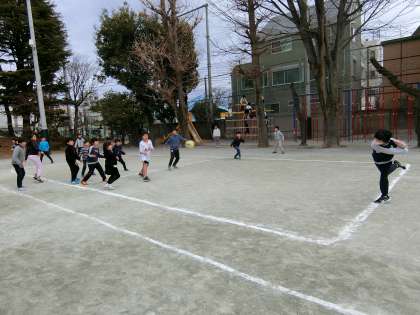 そのため昼休みの時間も若干短縮されていますが、子どもたちは元気いっぱい、ドッジボールやバスケットボール、鬼ごっこなど、友達と一緒に楽しんでいました。
