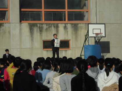 今日は立春です。今日の全校朝会での校長先生のお話しも、立春と昨日の節分のお話から始まりました。今週は美しい日本語週間であること、2月の「人格の完成をめざして」のテーマ「やりぬく心」などについてのお話がありました。