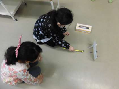 「これ、おもしろいよ。」「思ったより難しいな。」など、おもちゃで遊びながら、どんな仕組みでできているのか考えながら、楽しんでいました。