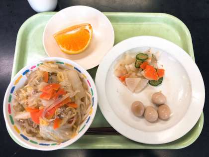 ラーメンは、6年生の給食リクエストアンケートでも票の多かったメニューです。ラーメンと言えば、のり、ねぎ、メンマ、焼き豚、煮卵などさまざまなトッピングがありますが、今日は、煮卵をイメージして、うずらのしょうゆ煮にしました。めんが1回では食器に入りきらないと思うので、ぜひおかわりをしてください。
