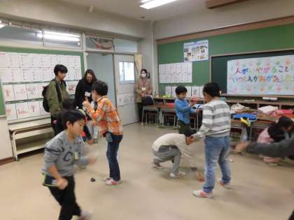 3,4時間目に、1.2年生が「あそびめぐり!まつり」を行いました。