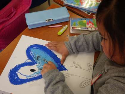 1年生は図工の時間に「こころの花をさかせよう」という学習をしています。