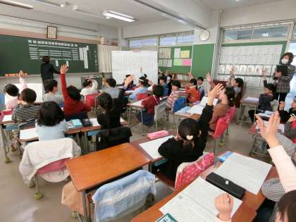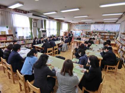 今回は、笹原小学校と桜丘小学校の2会場で授業を公開しました。笹原小学校会場では、2年3組・4年2組・6年2組の3学級で、それぞれの教材である「説明文」の学習を進めている様子を参観していただきました。また、授業後には各教室で協議を行い、最後に全体会として図書館に移動し、本校の研究概要や3分科会の報告などを行い、本日の研修のまとめを行いました。