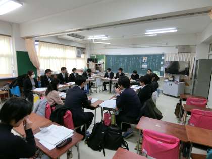 今日は、今年度3回目の「学び舎の日」で、桜丘中学校・桜丘小学校・笹原小学校の3校の教員が授業を通して研修しました。