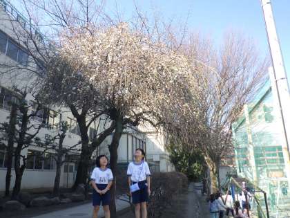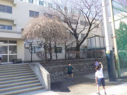 笹原小学校の校庭で、ほのかに春の香りがただよってきました。