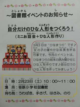 〜ミニお話会(読み聞かせ)+ひな人形作り〜
