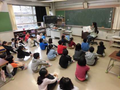 読み聞かせが始まると絵本に食い入るように集中して聞いていました。絵本の読み聞かせが大好きな2年生でした。