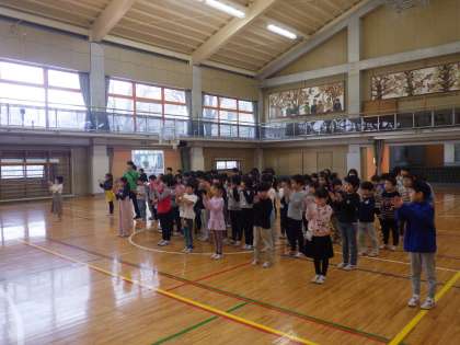 6年生への呼びかけやダンスなど、体育館で楽しく練習することができました。
