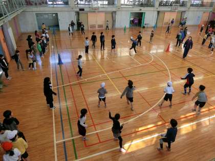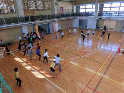 チームワークも高まり、作戦を立てて練習ゲームに、元気よく取り組んでいました。