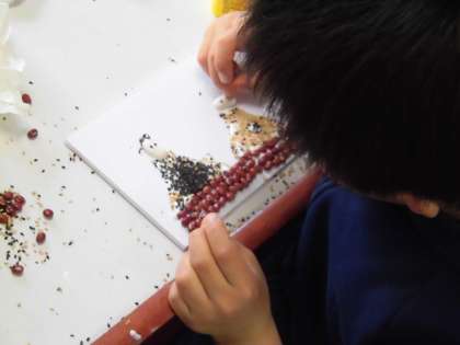 自分たちでもごまやあずきを使ってちいさなおひな様作りをしました。