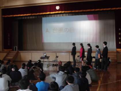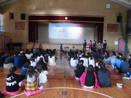 2月22日(金)の5時間目に桜丘中学校の生徒会のみなさんによる中学校ガイダンスが行われました。行事や部活、委員会の紹介や小学校と中学校の相違点などをスライドを用いて説明していただきました。もうすぐ中学生になる6年生ですが、今回のガイダンスで、より具体的な内容が分かり、「早く中学校へ行きたい」「中学校ではこんな部活に入りたい」などと、期待を膨らませていました。