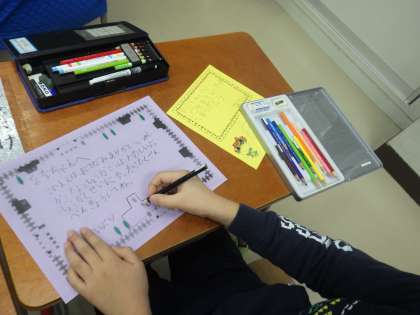 さっそくお返事を書くことにしました。幼稚園児が読めるように大きな字で書いたり、絵を描いたり、心を込めて返事を書いていました。