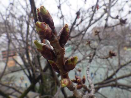 本校には桜の木がたくさんありますが、よく見るとつぼみがもうこんなに大きくなってきました。