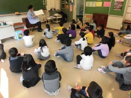お話しポケットの方々が絵本の読み聞かせをしてくれました。今日は、2年生の今年度最後の絵本の読み聞かせでした。絵本の読み聞かせは楽しく、あっという間に時間は過ぎていきました。