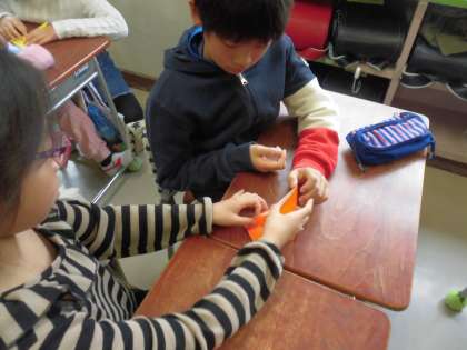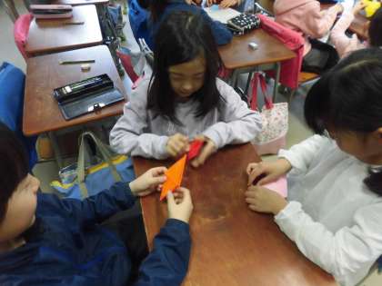 折り方がわかる児童が、分からない児童に教える様子が見られました。