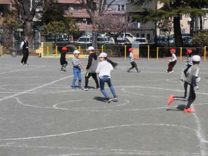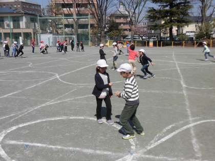 友達と仲よく学校生活をおくっている2年生は、もっと仲よくなるために学年集会を開きました。しっぽとりゲームや、どんじゃんけんぽんなどをみんなで楽しみました。かがやく笑顔いっぱいでした。