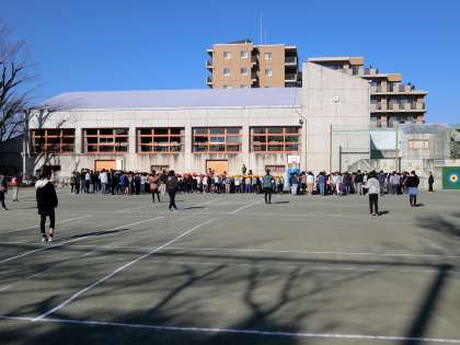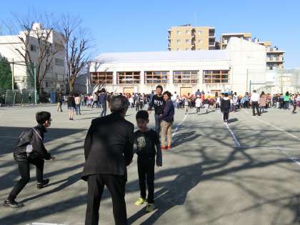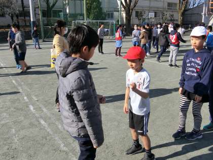 最初に説明があり、一斉にじゃんけんが始まりました。集会委員が分担して立つ4か所の関門でじゃんけんをし、連続して勝ち抜いた人が校長とじゃんけんをしました。たくさんのみなさんが校長に勝ち、全体の前で紹介され、大きな拍手を受けていました。