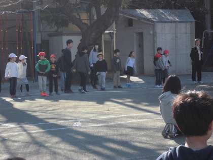 いわゆる王様じゃんけんですが、途中は集会委員と、最後は校長先生とじゃんけんをします。校長先生は毎朝正門のところで子どもたちとじゃんけんをしているからかじゃんけんが強いです。子どもたちはなかなか勝つことができません。