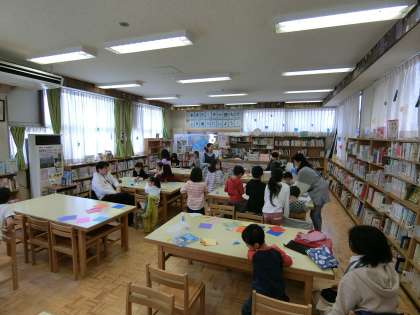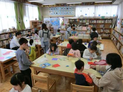 今日は今年度最後の図書館イベントの日でした。低学年の子どもたちをを中心に、未就学のお子さんと保護者の方も参加してくださいました。
