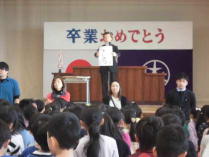 6年生は、自分の興味をもったテーマを決めて、調べて、1年間を通して朝会で全校児童に発表してきました。笹の子スピーチは笹原小学校の伝統のひとつです。