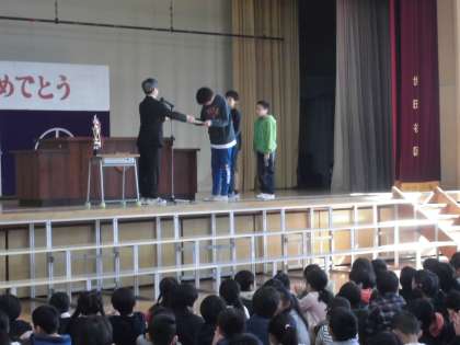 つづいて、東京都公立学校美術展に出品した表彰と、地域のバスケット大会で準優勝したチームの表彰がありました。