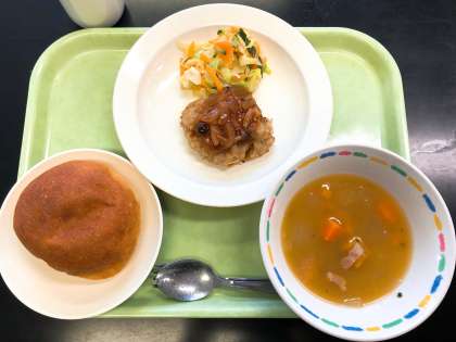 給食も残すところ今日を入れてあと三日です。今年度の給食を振り返ってみましょう。マナーよく食べることができましたか?好き嫌いはしませんでしたか?お友達と協力して準備や片付けができましたか?今週一週間は、みなさんの好きなものをたくさん給食に取り入れました。今日は人気メニューのハンバーグや、じゃがいものハニーサラダです。残りの三日間も好き嫌いせず、クラスのみんなと楽しく給食を食べましょう。